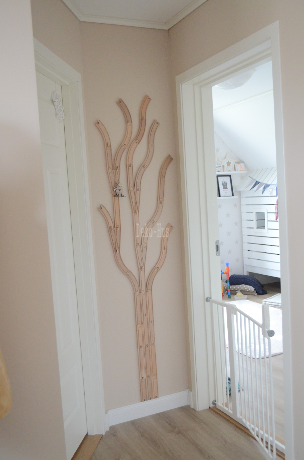 Was für eine geniale Idee. Da wir gerade beim renovieren des Kinderzimmer sind & nicht ein Wandtattoo als Baum nehmen wollten, kommt diese Idee mit den Ikea Schienen gerade recht.