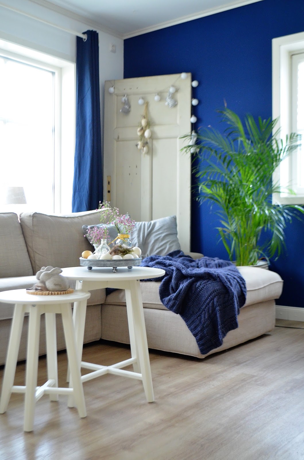 die österliche DIY-Idee einfach zauberhaft und die blaue Wand im Wohnzimmer ist der Knaller.