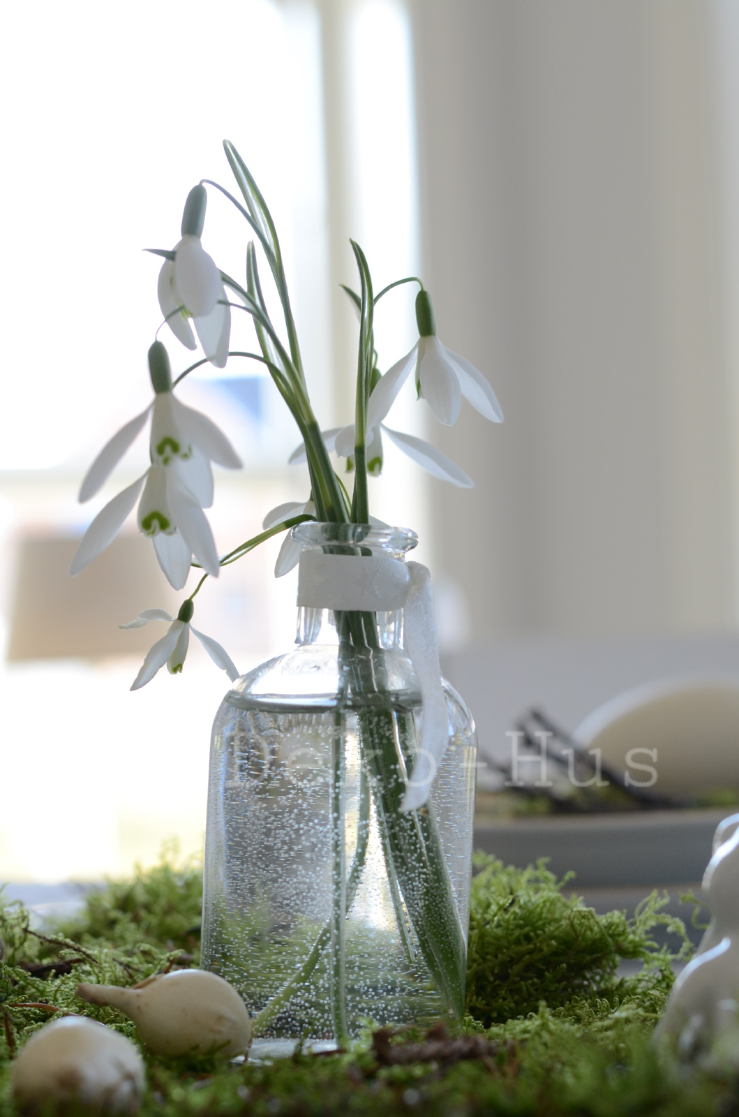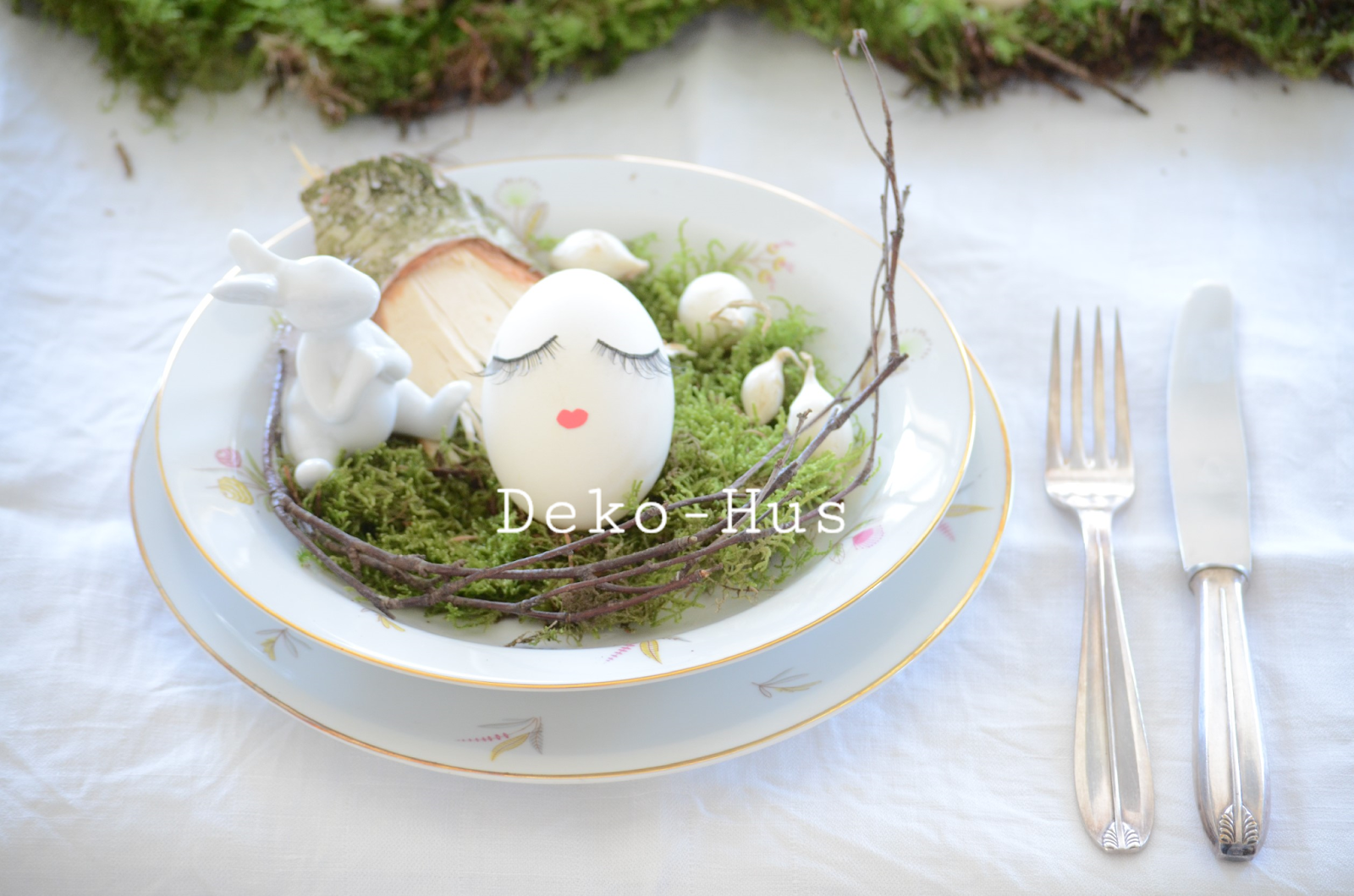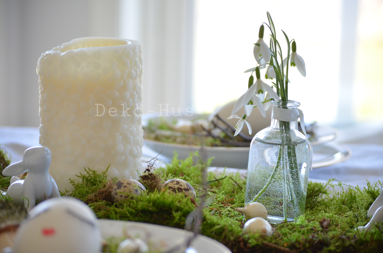 In die Mitte des Tisches kommt ein Tischläufer aus Moos (vorher gut ausklopfen, nicht das es zu Panikanfällen durch kleine Moosbewohner kommt) und