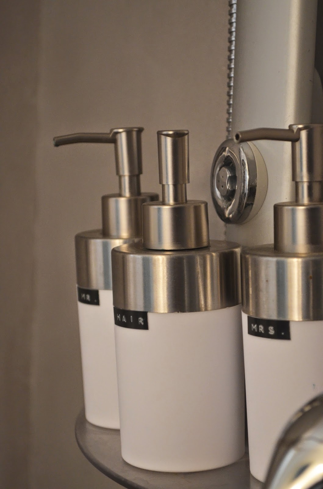 Bei der lieben Lena habe ich die Idee mit den Seifenspendern gesehen. Da mir zu Shampoo kein Etikett eingefallen ist, bat ich die Instawelt um Hilfe. Und die Lösung ist so simpel: hair!