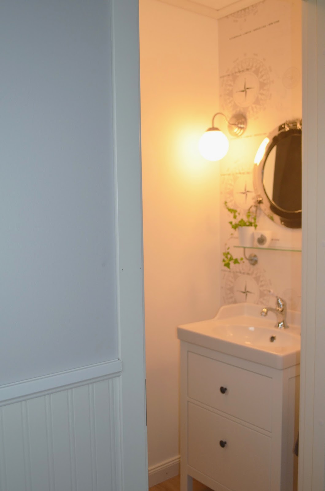 Wir haben echt viel gemeinsam: keine Fliesen (obwohl ich mich da im Bad leider geschlagen geben musste) und die 2 Lampen, die bei mir genauso, nur verkehrt herum 😉 im Bad hängen.