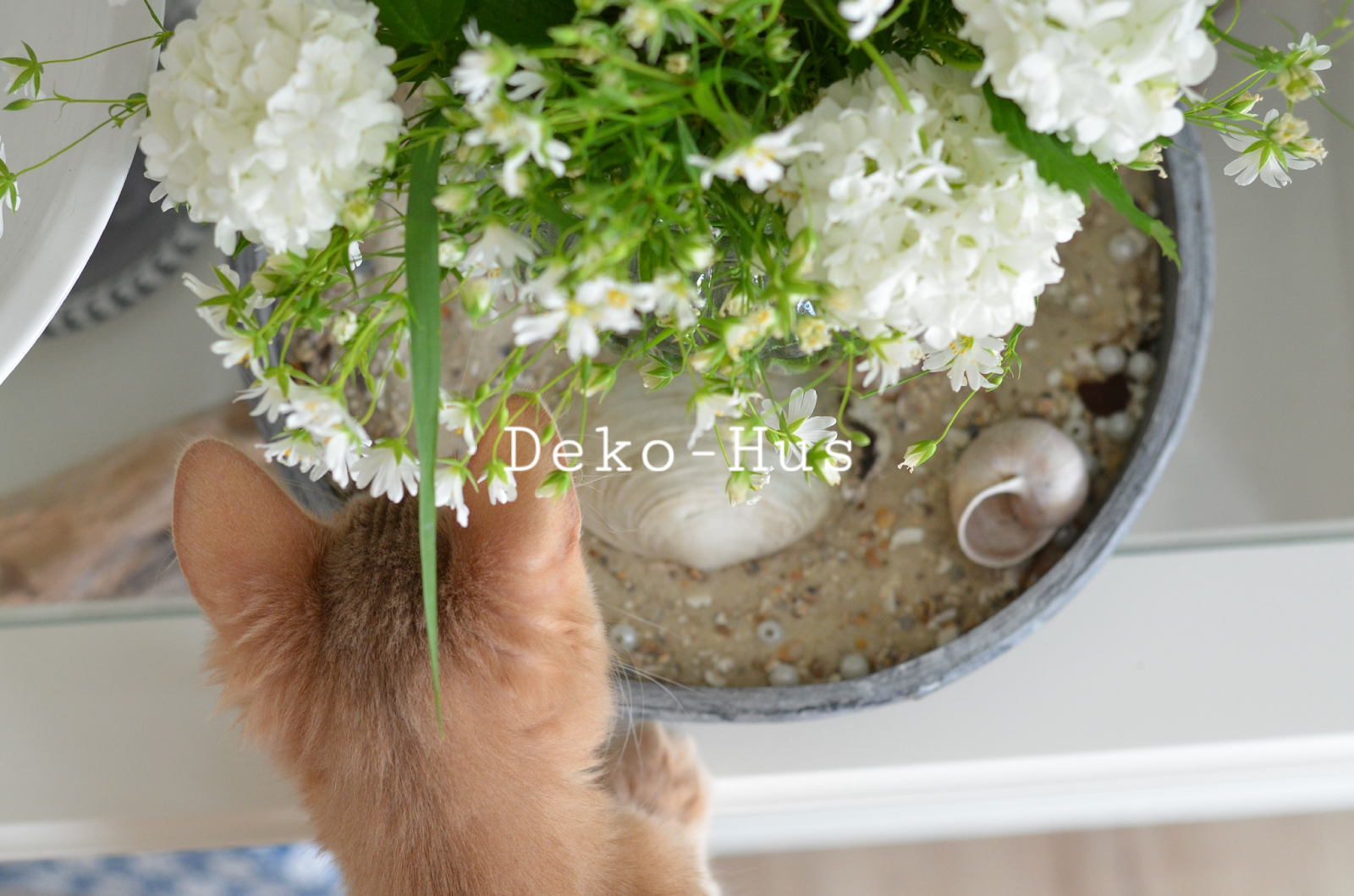 Wildblumen (Sternmiere) sind von der Wiese und der Schneeball ist aus dem Garten. Aus meinem nicht vom Nachbarn.