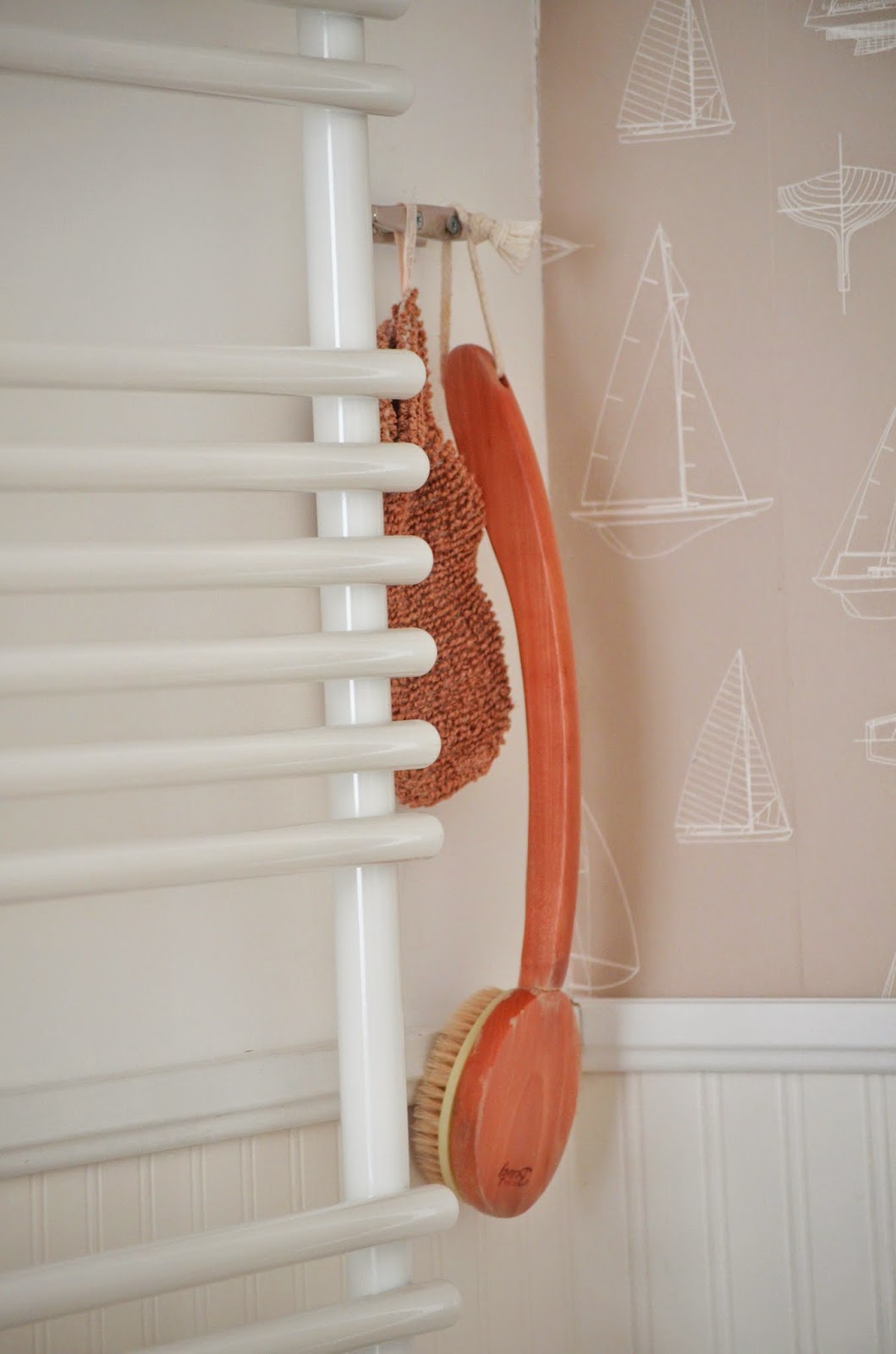Die Haken (unter anderem auch am Wäscheschacht) sind aus dem Bootsbedarf und verleihen so den Raum mehr maritimen Flair.