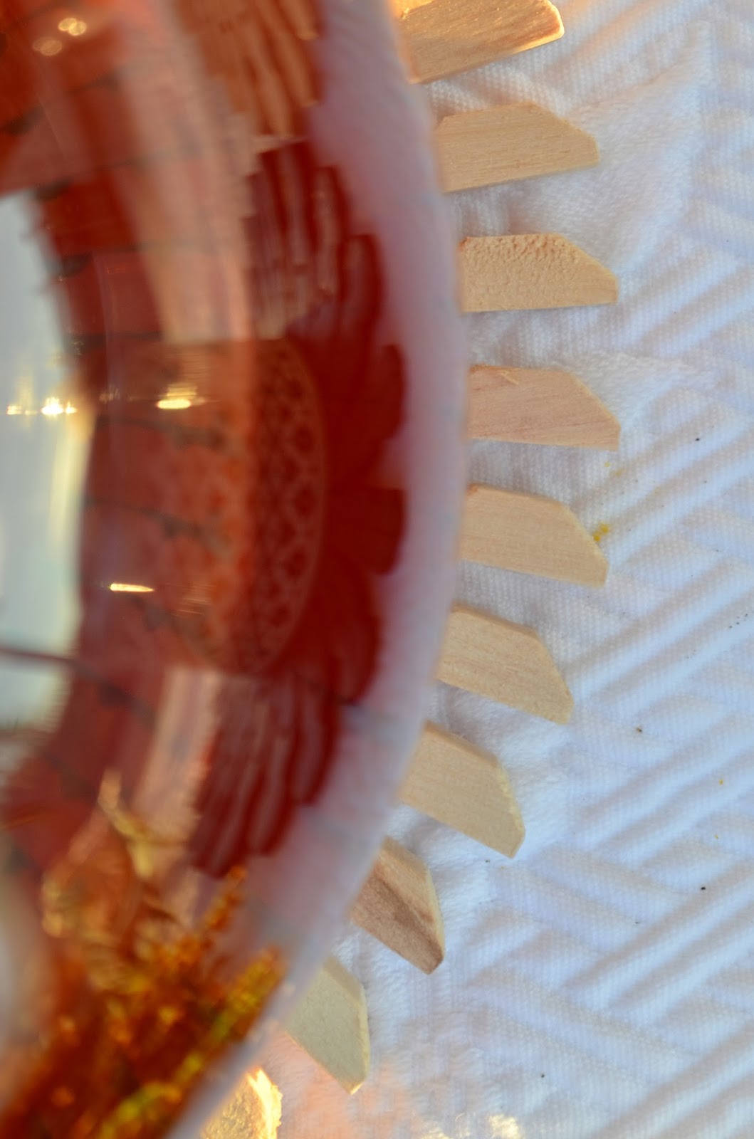 Das heißt die Wäscheklammern aus Holz werden nicht wie oben beschrieben erst zusammengeklebt, sondern man klebt gleich die schmalen Enden zusammen, bis man einen Kreisrunden Untersetzer hat.